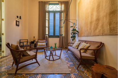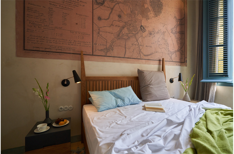Buenavida Muralto: This apartment occupies the first floor and enjoys the Havana Bay breeze and ample natural light through two casement windows to the Santa Clara street. It covers more than 1,500 sq ft and includes 3 bedrooms suitable for up to 6 people, 1 complete bathroom, 1 guest toilet, a living room and a fully equipped kitchen open to the adjoining dining room. It is organized around a luminous interior courtyard with an outdoor seating area, sheltered by an ancient stone wall. |